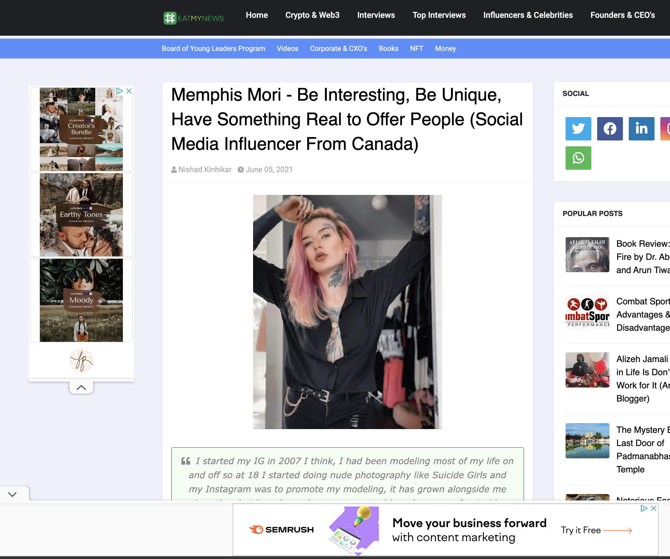 Eatmy.news - Memphis Mori - Be Interesting, Be Unique, Have Something Real to Offer People (Social Media Influencer From Canada)