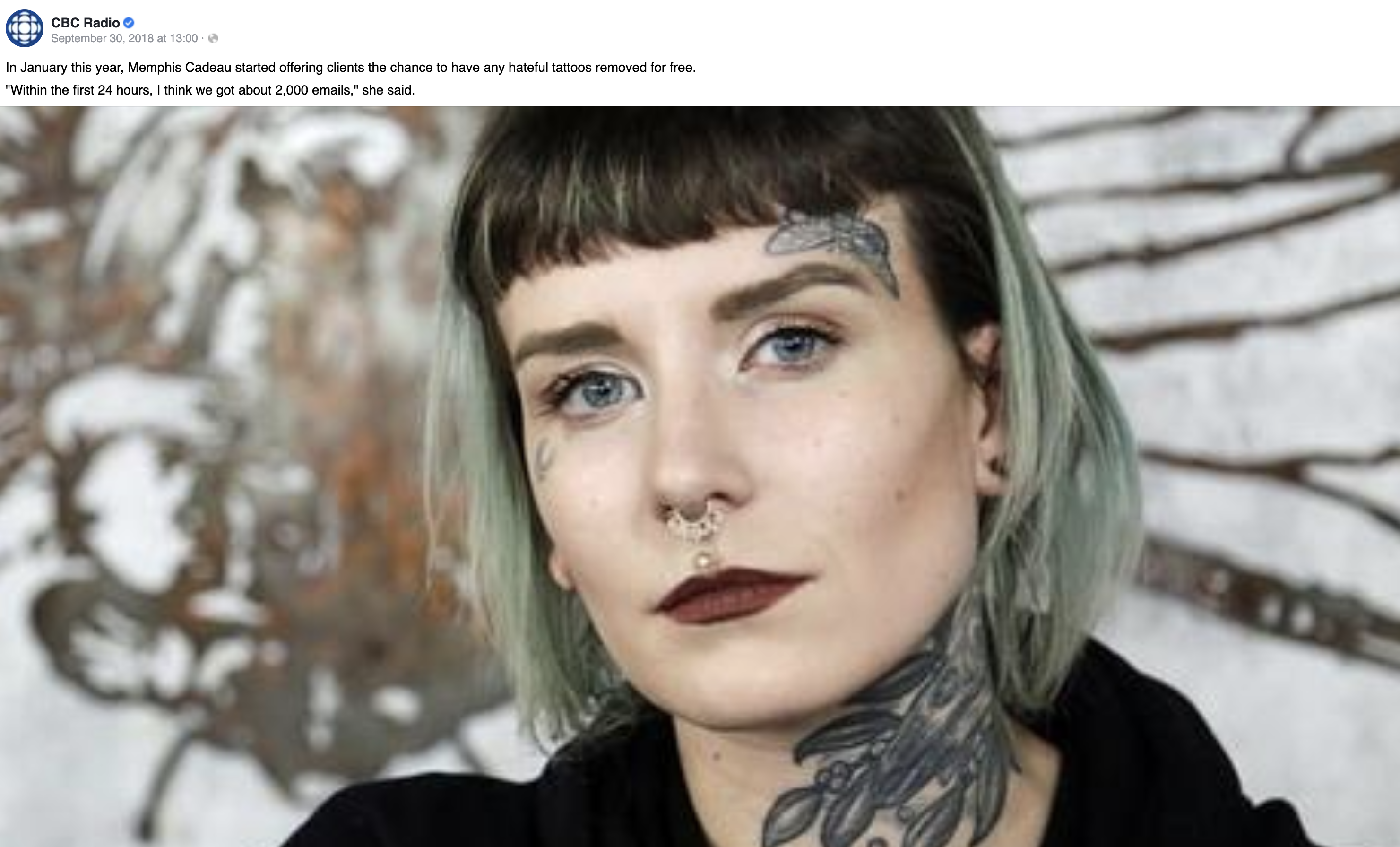 CBC - Hamilton shop offers free laser removal of racist tattoos Jan 11 2018