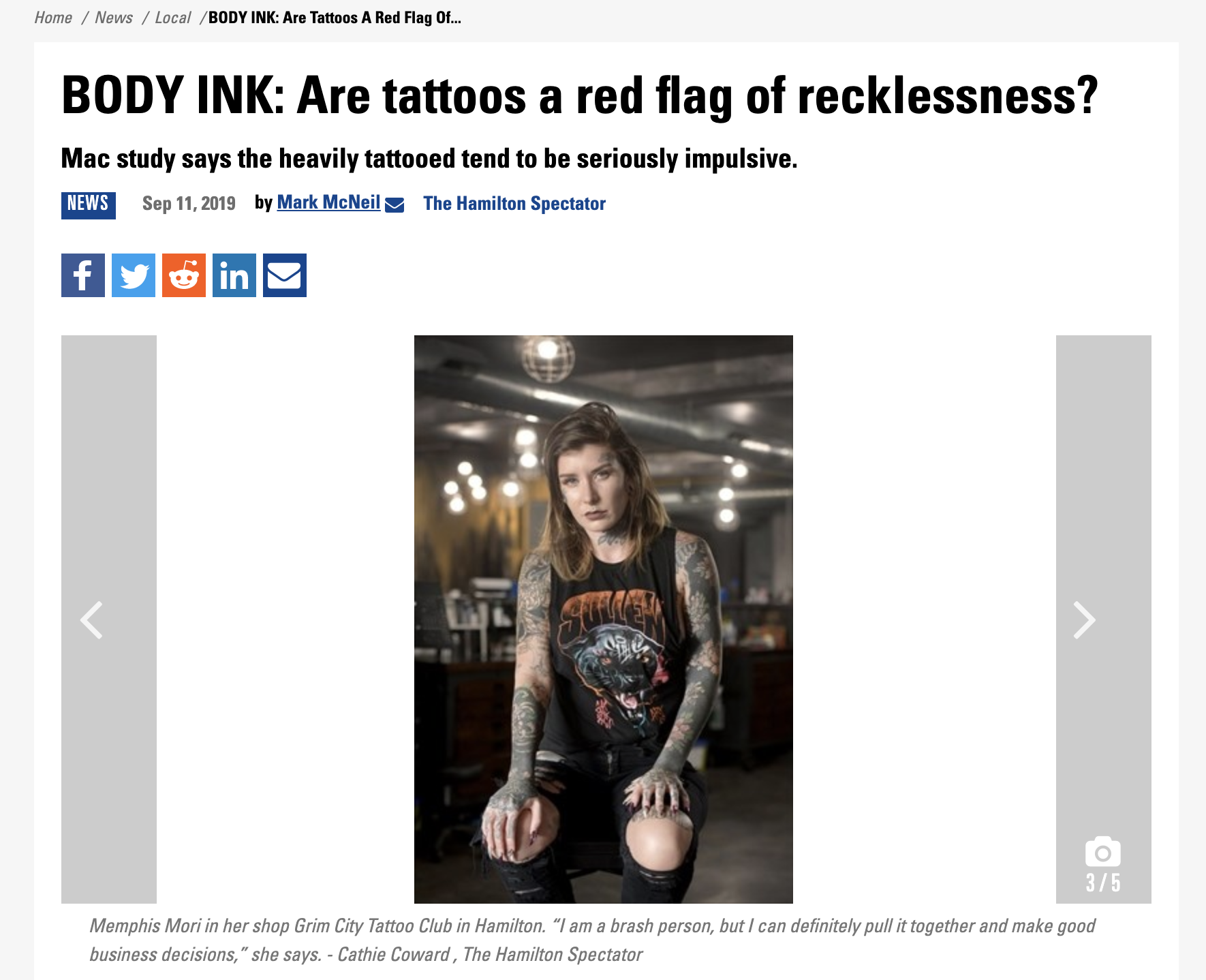 Toronto Star - Is body ink a red flag of recklessness? Sep 23 2019